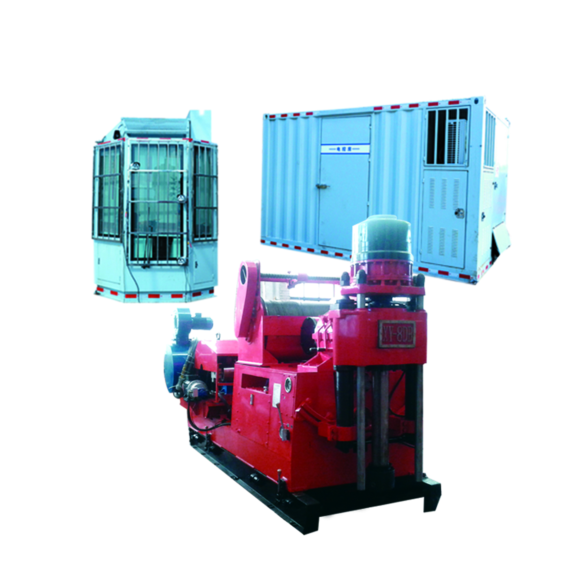 XY-8DB型变频电驱动岩心钻机是以我公司XY-8立轴钻机为原型,集成各个模块化的交流变频电驱动单元及数据采集单元,采用PLC与现场总线进行电气系统配置的新型深孔岩心钻探成套装备,即可满足3000米S75深孔取心勘探需求,亦可用于大口径合金钻进。广泛应用于地质勘探,水文水井、煤田、油气田勘探等施工领域。