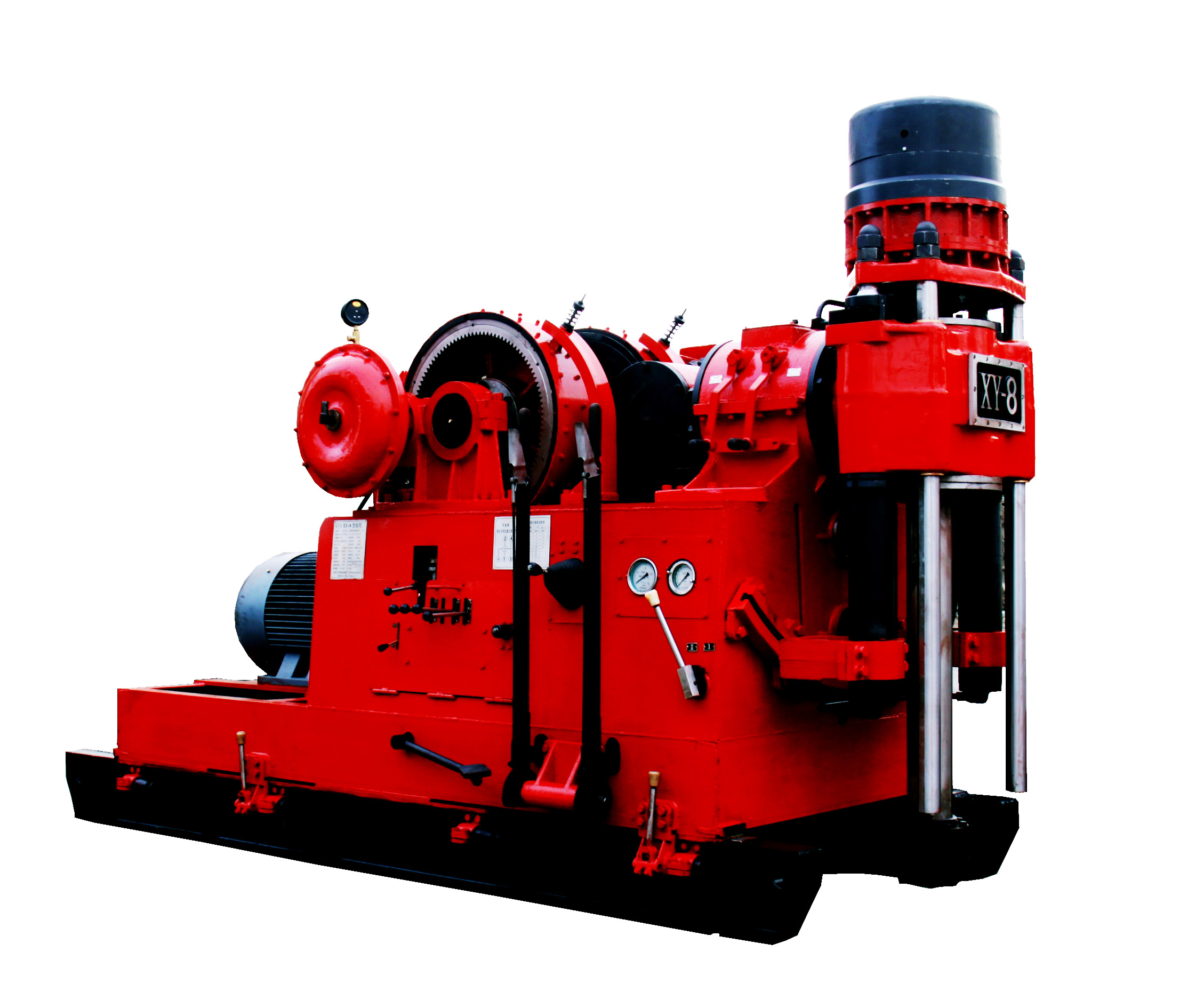 XY-8B型钻机是在我公司XY-8钻机增加了转盘,可作为传统的立轴钻机使用,又可作为转盘钻机使用,实现一机多用广泛用于地质、水文水井、煤田地质工程等行业。