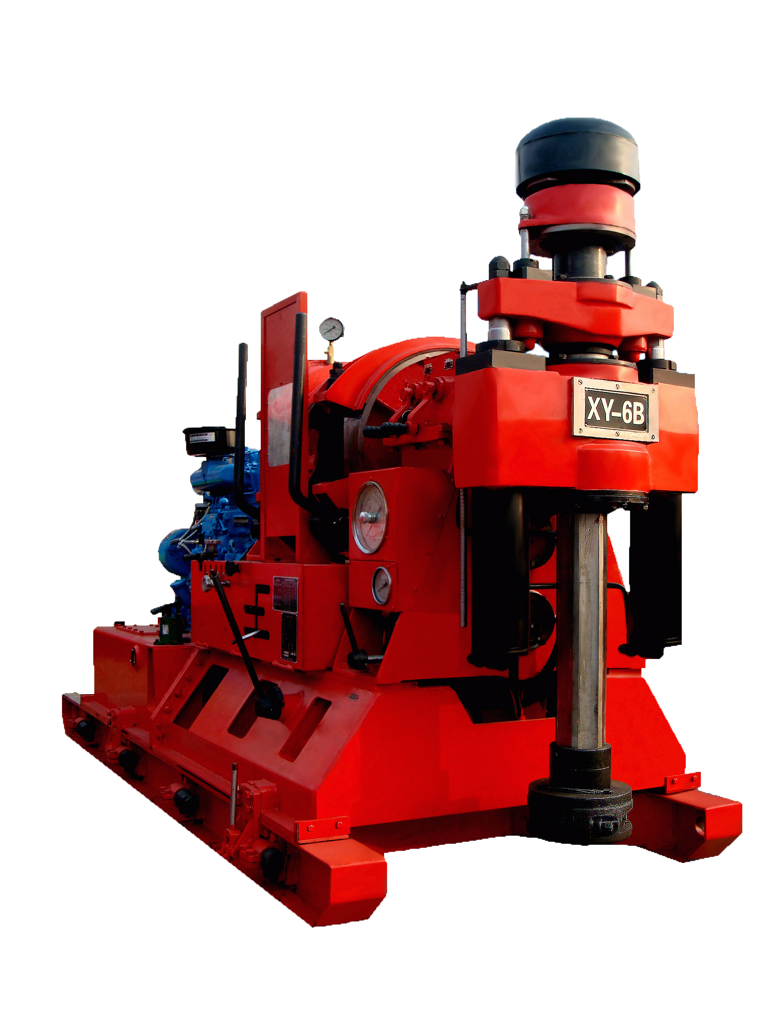 XY-6B岩心钻机是地质找矿、水文水井、煤田地质勘探、石油和天然气勘探开发等领域的深孔钻探设备。该钻机集中了立轴式液压钻机的优点,可进行金刚石小口径钻进,也可进行大口径钻进,可以垂直钻孔,也可以钻斜孔,是深孔地质勘探钻孔的理想设备。