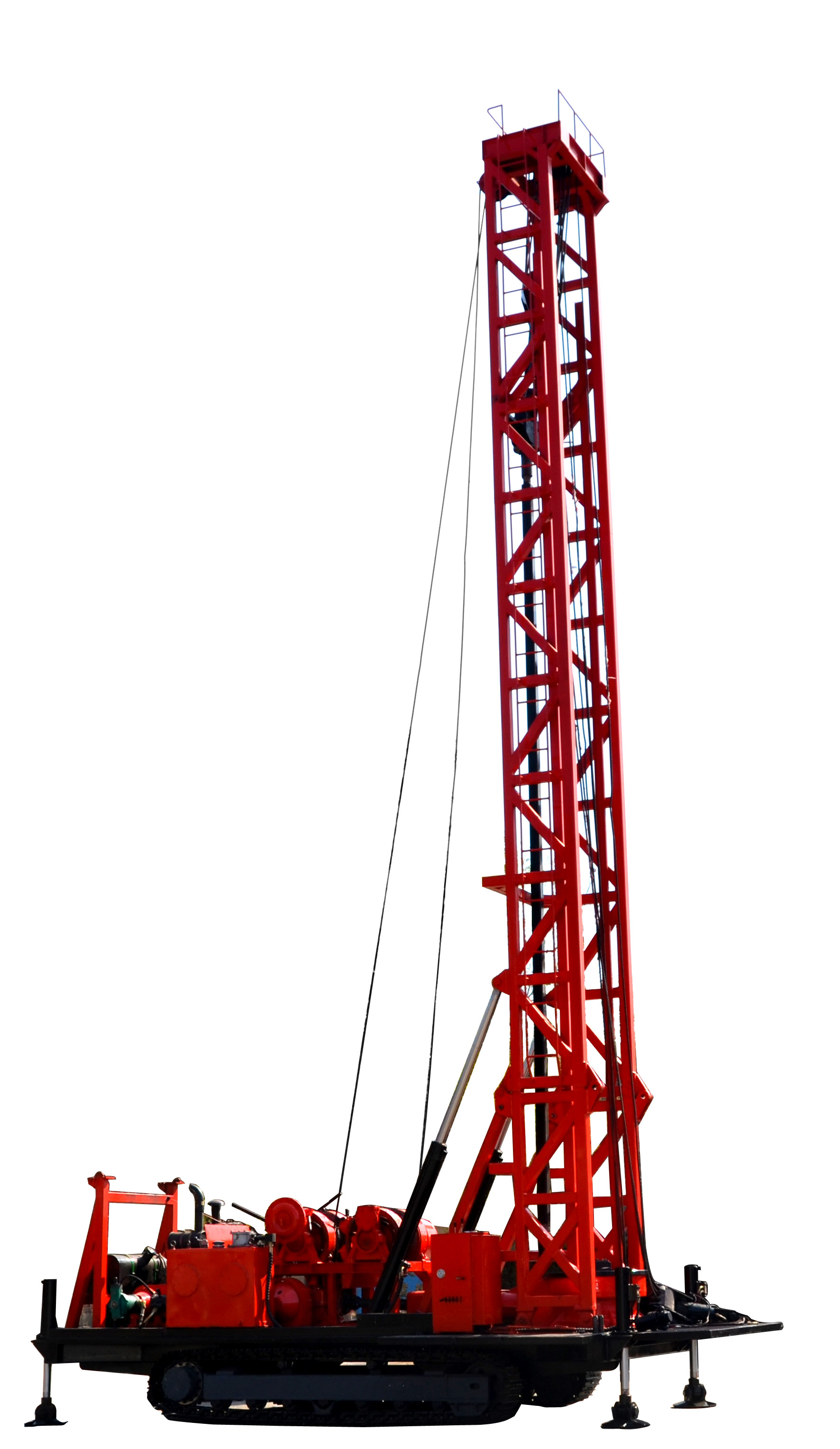 1、双卷扬机、转盘式钻机,履带行走,配有K型钻塔,塔机一体,整体性好,方便短距离移动孔位。